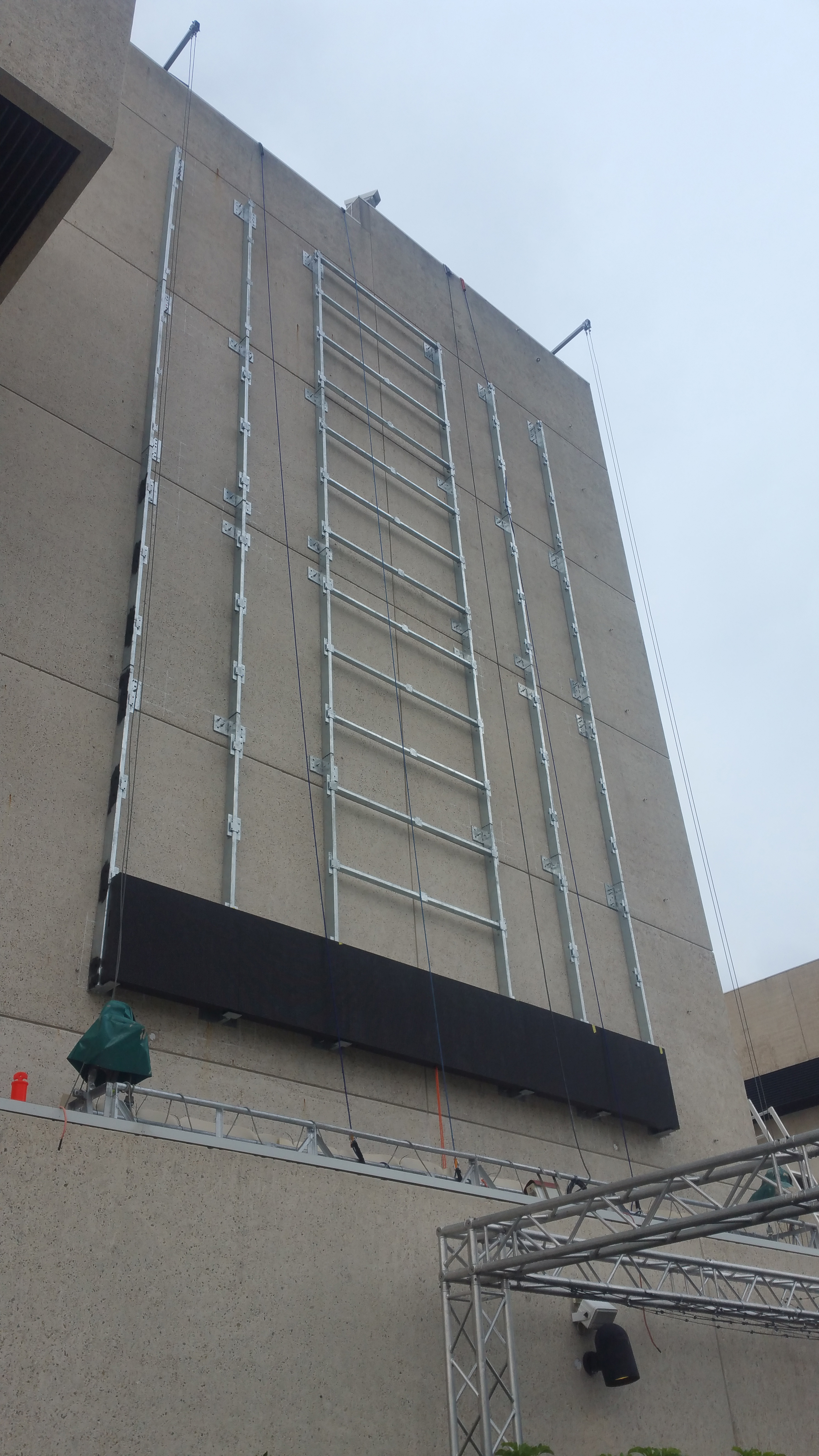 QPAC is a historically listed site, thorough planning was required to develop the structures to house the screens, allow for serviceability through abseiling systems and provide for what would be a complicated and detailed installation process. Each fixing point had to be x-rayed for risk mitigation on this historically listed site. Thousands of fixing points secured the custom developed frame systems manufactured and installed by SignSite Group.